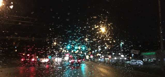 Dark world, but how the streets shine— scarlet, then emerald! And sparkling on the windshield, rain, the gentle applause— this day is done.